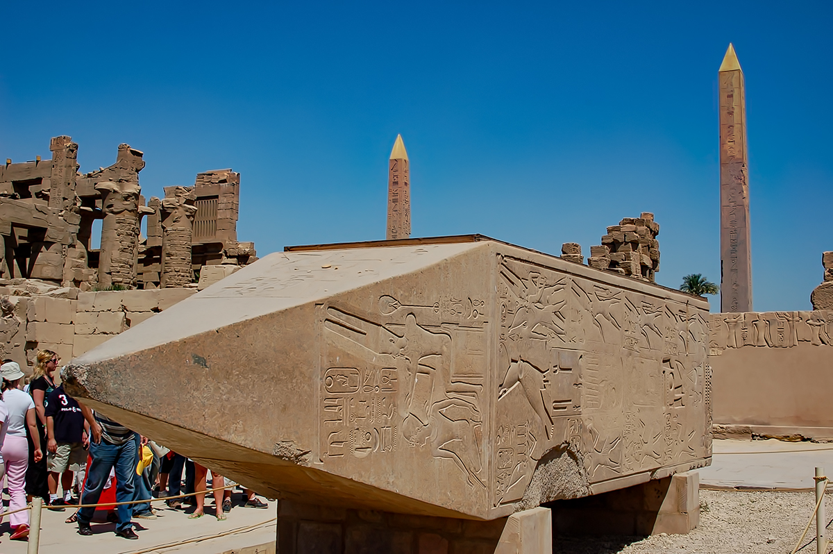 das ist im tempel von karnak – also auch noch in luxor. das oberteil des obelisken der hatschepsut. ganz in der nähe des berühmten scarabäus von Aménophis III. um den ‚muss‘ jeder einmal gelaufen sein – und zwar linksrum. sonst wird er vom pech verfolgt… und dierekt neben dem heiligen see.