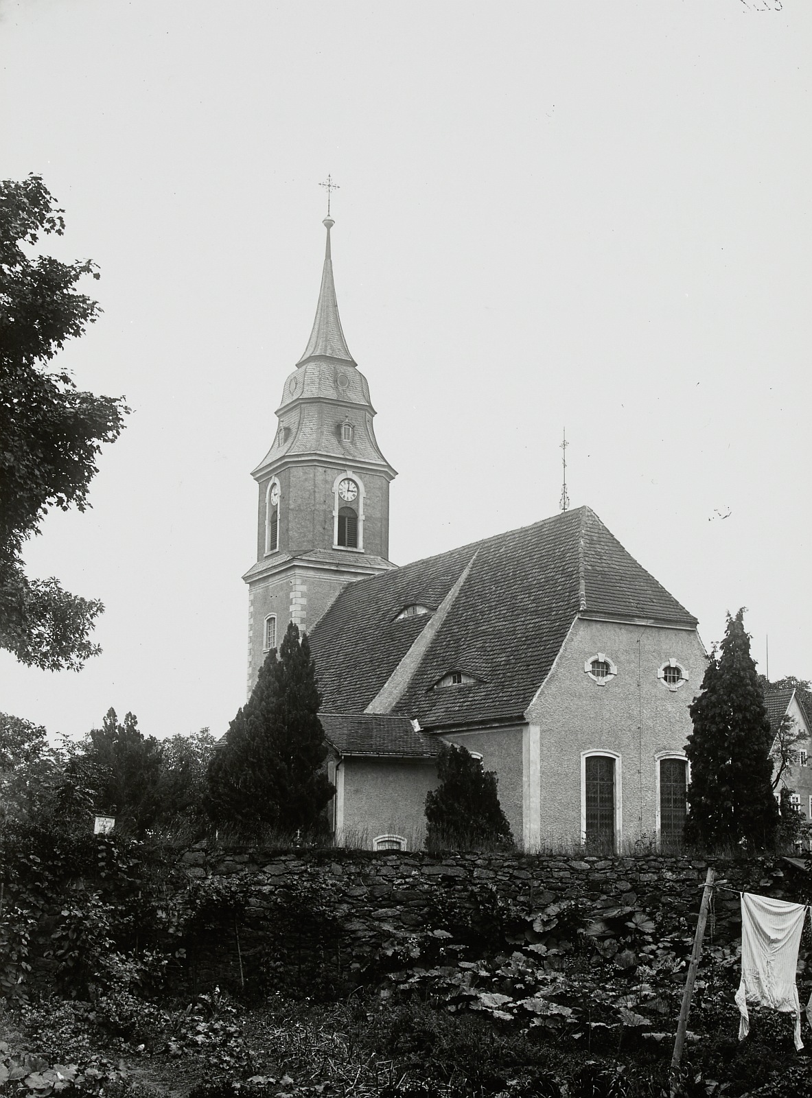 Übrigens brannte der Turm im Jahre 1899 nach Blitzschlag ab ohne das Kirchenschiff in Mitleidenschaft zu ziehen. Er wurde dann unter Leitung des Architekten Woldemar Kandler wieder hergestellt so das die Kirche ihre ürsprünglich Form zurückerhielt.