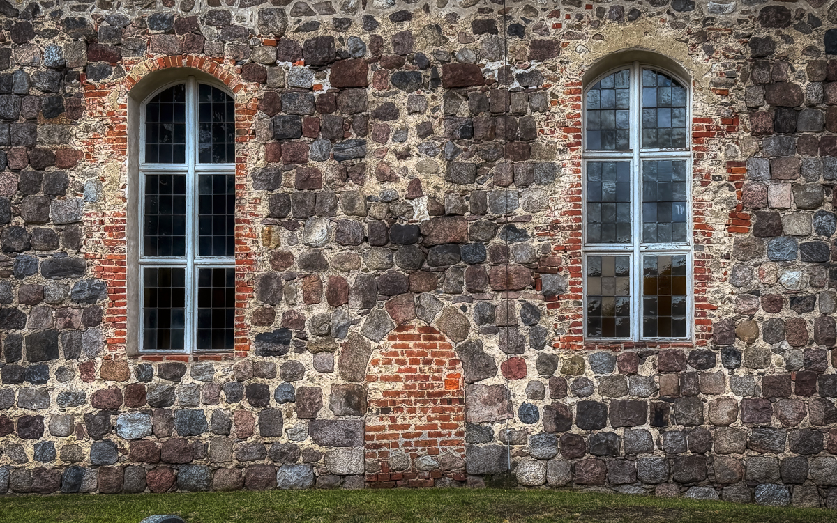 Beim Näherkommen fällt der sorgfältige Feldsteinverband auf: große, unregelmäßig zugerichtete Steine, die in jahrhundertealter Technik zu ebenen Flächen gefügt sind. An der Ostwand erkennt man noch den ursprünglichen Dreifensterabschluss, das mittlere Fenster ist allerdings vermauert; darüber sitzt ein kleiner Okulus im Giebel. Die schmalen, hohen Fenster des Langhauses wurden in späterer Zeit vergrößert – Spuren eines langen Baulebens, das vom Mittelalter über die Barockzeit bis ins 19. Jahrhundert reicht.