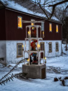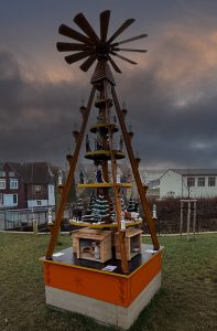 Gerade im Osterzgebirge entwickelte sich daraus eine besondere Tradition: Die Pyramide wurde zur gemeinschaftlichen Sache. Vereine, Kirchgemeinden, Feuerwehren oder Nachbarschaften errichten sie gemeinsam, pflegen sie, schmücken sie jedes Jahr neu. Oft greifen die Figuren lokale Motive auf – Bergleute, Waldarbeiter, Handwerker, die Heilige Familie oder die Dorfkirche selbst. So erzählt jede Pyramide ein kleines Stück Ortsgeschichte.