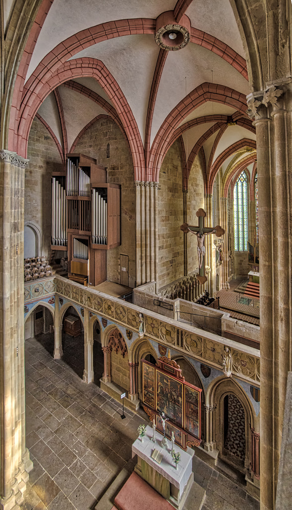 das bauwerk – welches ja ein ensemble mit der albrechtsburg bildet – ist schon beeindruckend. fast 100m lang kann man es vom westeingan in seiner ganzen länge überschauen (weil man von den erhöhten stufen über den lettner sehen kann).